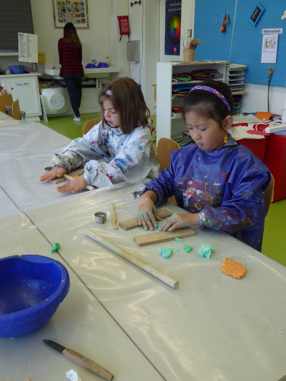 Vom 22. bis 24. Mai haben wir bei strahlendem Wetter die Projektwoche durchführen können. Alle Kinder der Kindergärten und der Primarschule waren in durchmischten Gruppen zum Thema "fit und zwäg" unterwegs. und das gab's: Im Schulgarten; Über Stock und Stein - im Wald unterwegs; Duftende, bunte Streifen und Papier herstellen; Kugelbahnen bauen im Wald; Papierflugzeug-Werkstatt; Spielestrich in der Kaserne; Sport; Spiel, Spass im Sarasinpark; Wasser, spielen, geniessen und Mandala gestalten; Rhythm is it...
